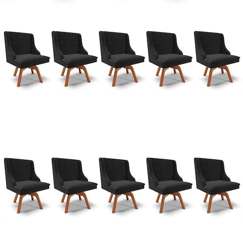 Kit 10 Cadeiras Estofadas Giratória Para Sala De Jantar Lia Suede Preto - Ibiza
