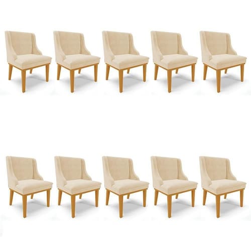 Para quem procura conforto, qualidade e elegância, o Kit 10 Cadeiras Estofadas para Sala de Jantar Base Fixa de Madeira Castanho Lia Suede Bege, da Ibiza, é a escolha certeira!