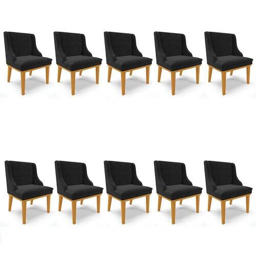 Para quem procura conforto, qualidade e elegância, o Kit 10 Cadeiras Estofadas para Sala de Jantar Base Fixa de Madeira Castanho Lia Suede Preto, da Ibiza, é a escolha certeira!
