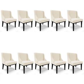 Sofisticação e conforto, são as palavras que definem o Kit 10 Cadeiras Estofadas para Sala de Jantar Base Fixa de Madeira Preto Lia Linho Bege, da Ibiza, confira!