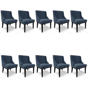 Procurando móveis confortáveis e resistentes? Conheça o Kit 10 Cadeiras Estofadas para Sala de Jantar Base Fixa de Madeira Preto Lia Suede Azul Marinho, da Ibiza!