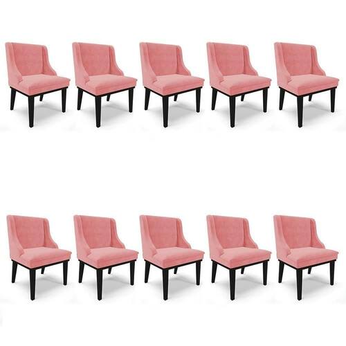 Procurando móveis confortáveis e resistentes? Conheça o Kit 10 Cadeiras Estofadas para Sala de Jantar Base Fixa de Madeira Preto Lia Suede Rosê, da Ibiza!