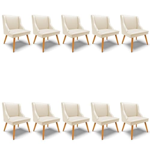 Ideal para adicionar conforto e sofisticação ao cômodo, o Kit 10 Cadeiras Estofadas para Sala de Jantar Pés Palito Lia Sintético Bege, da Ibiza, é a opção perfeita para acomodar a família toda! Confira!