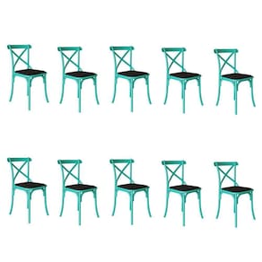 Kit 10 Cadeiras Katrina Assento Corano Preto Aço Azul Turquesa Azul - Blush