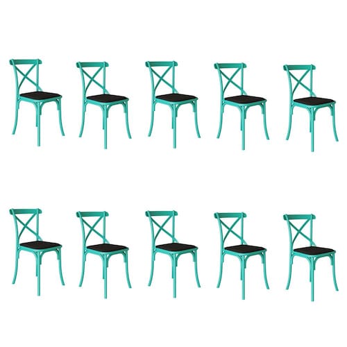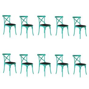 Kit 10 Cadeiras Katrina Assento Corano Preto Aço Azul Turquesa