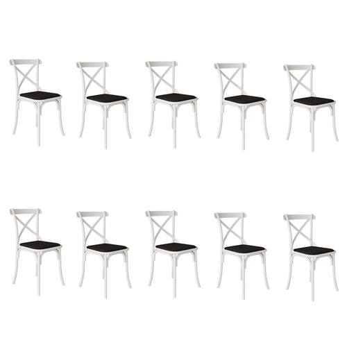 Kit 10 Cadeiras Katrina Assento Corano Preto Aço Branco
