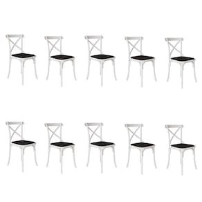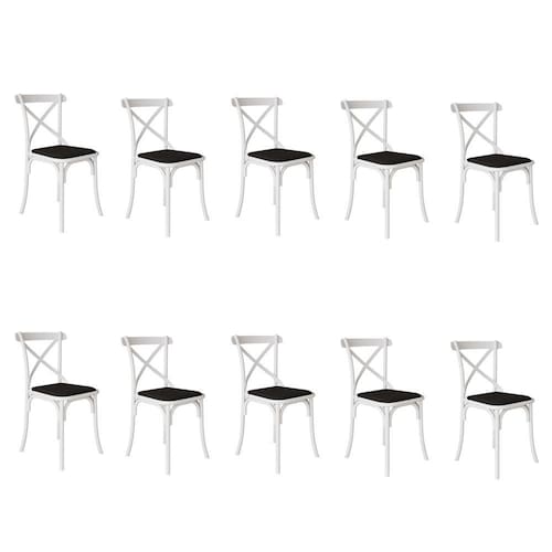 Kit 10 Cadeiras Katrina Assento Corano Preto Aço Branco