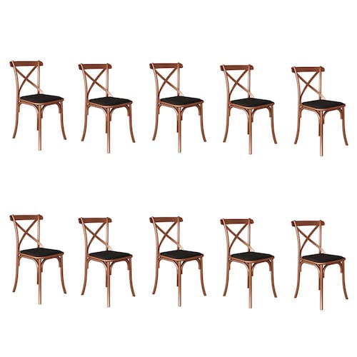 Kit 10 Cadeiras Katrina Assento Corano Preto Aço Cobre - Laranja
