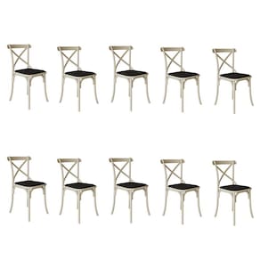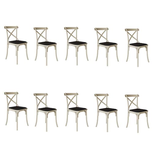 Kit 10 Cadeiras Katrina Assento Corano Preto Aço Off White - Bege