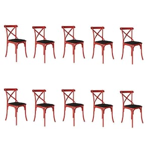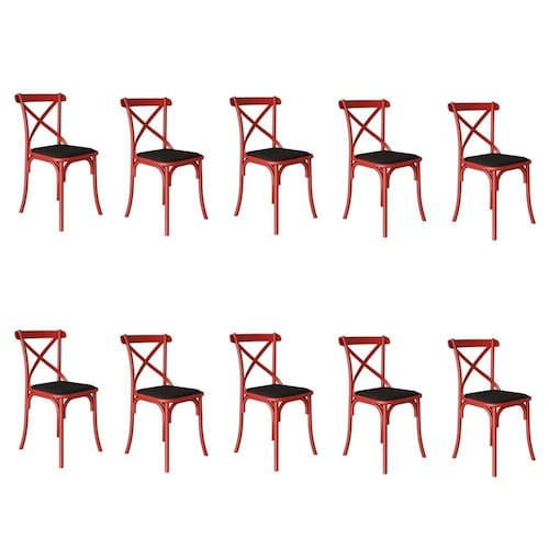 AS IMAGENS SÃO MERAMENTE ILUSTRATIVAS E PODEM SOFRER VARIAÇÕES DE COR E PEQUENOS DETALHES DE ACORDO COM O SEU MONITOR, ILUMINAÇÃO DO AMBIENTE E ATÉ MESMO A SUA PERCEPÇÃO VISUAL.Kit 10 Cadeiras Katrina Assento Corano Preto AÃo Vermelho