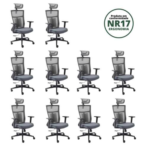 Informação Complementar: 10x Cadeira de Escritório Presidente NR17 Vertta Basic Preto/Cinza