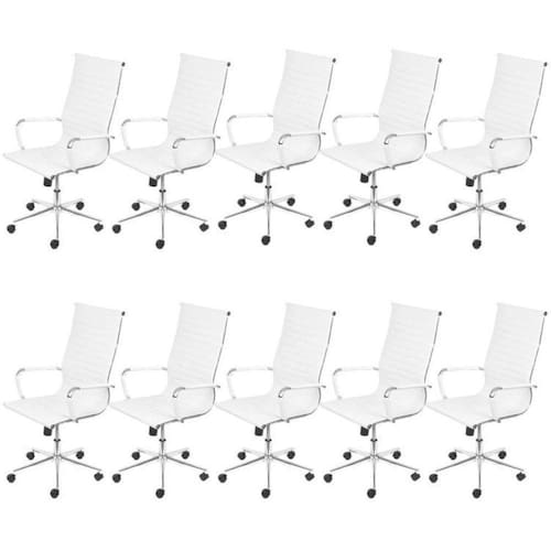 Kit 10 Cadeiras para Escritório Presidente Esteirinha com Relax Sintético 3301 Or Design A Cadeira OR-3301 tem uma estrutura metalizada cromada com rodízios em PU que não danificam o piso, sistema relax com travamento, assento e detalhes no encosto dos braços em PU. Uma excelente escolha, agregando estilo e conforto para seu escritório. Cadeira resistente, suporta até 120 kg. Suporta Até (kg): 120 Altura do Conjunto: 106 cm Ambiente: null Ambiente Principal: Escritório Cor: Branco Informação Complementar: 2x Conjunto 4 Cadeiras de Escritórios com Rodízios Esteirinha Alta Sintético BrancoLargura: 61Altura: 106Peso: 12.19Profundidade: 46.5Necessita Montagem: Sim1x Kit 2 Cadeiras para Escritório Presidente Esteirinha Alta 3301 Or Design BrancoLargura: 61Altura: 106Peso: 12.19Profundidade: 46.5Necessita Montagem: Sim Possui Rodízio: Sim