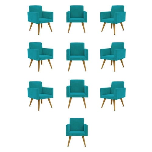 Kit 10 Cadeiras Poltronas Decorativa - Escritório - Recepção Cor:azul Turquesa