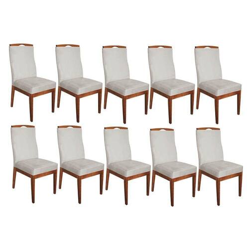Conjunto 10 Cadeiras Para Sala De Jantar Ricco Estofada Madeira Castanho Veludo Bege Claro - Ahazzo Móveis Cor Bege
