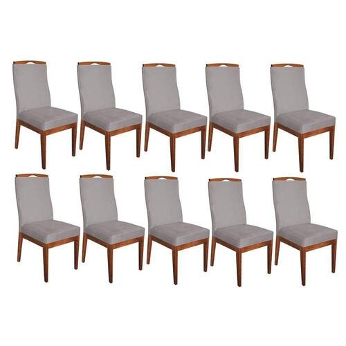 Conjunto 10 Cadeiras Para Sala De Jantar Ricco Estofada Madeira Castanho Veludo Cinza Claro - Ahazzo Móveis Cor Cinza