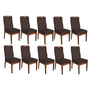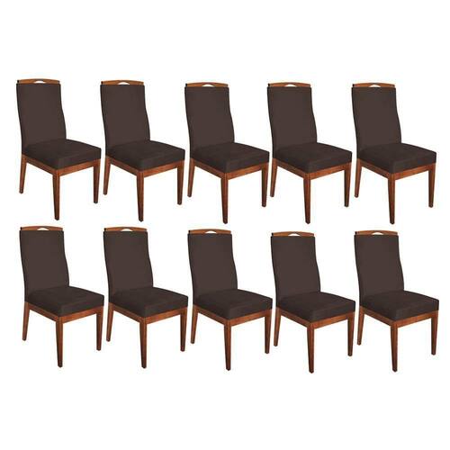 Conjunto 10 Cadeiras Para Sala De Jantar Ricco Estofada Madeira Imbuia Veludo Marrom Escuro - Ahazzo Móveis Cor Marrom