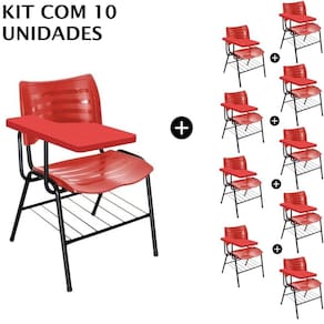 KIT 10 Cadeiras Universitárias Vermelho com porta livros