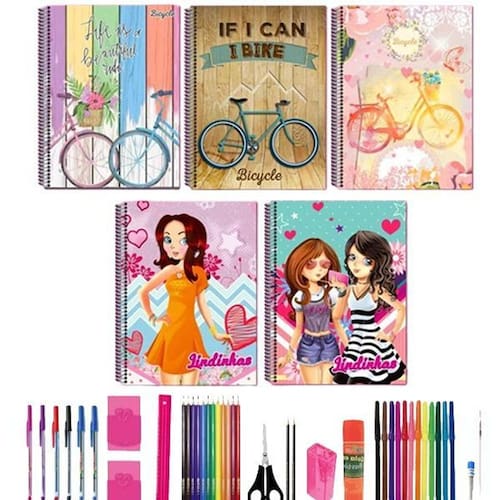 Kit 10 cadernos grande com pauta estampa feminina arame menina estampado colegial escolar todas com estampas diferentes meninas espiral 96 folhas capa dura reforçado 1 matéria com 40 materiais escolar