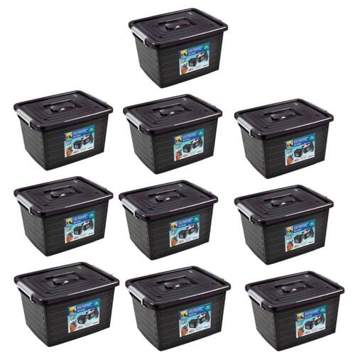 Kit 10 Caixa Organizadora Multiuso Preta com Tampa 30L