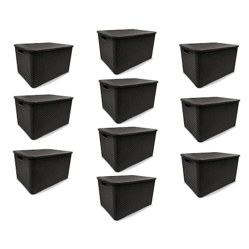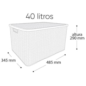 Kit 10 Caixas Organizadoras Rattan PRETA 40 Litros Arqplast Kit 10 Caixas Organizadoras Rattan PRETA 40 Litros Arqplast Caixa organizadora em plástico com tampa, que facilita a organização De guarda roupas e armários, por ser uma peça charmosa expor em Ambientes abertos dá um toque especial a decoração. Combina com vários ambientes, como cozinha, sala, banheiro e quarto. Material - Polipropileno DescriçãoDimensões:480 X 340 X 890mm Corpo 505 X 370 X 165mm Tampa comprimento x largura x altura medida do produtoDimensões: 485 X 345 X 290mm comprimento x largura x altura
