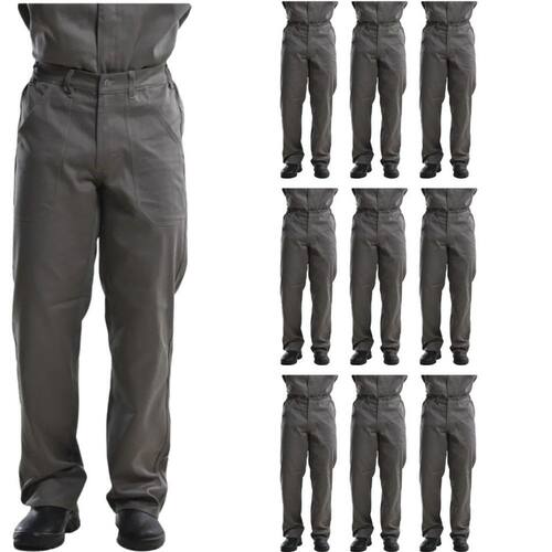 Kit 10 Calças Profissional Uniforme Trabalho Pesado Brim Metade Elástico - Cinza - 46
