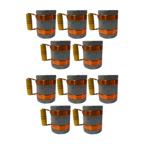 10 Canecas Alça Cobre e Madeira Pedra Sabão Chopp Cerveja 350ml.