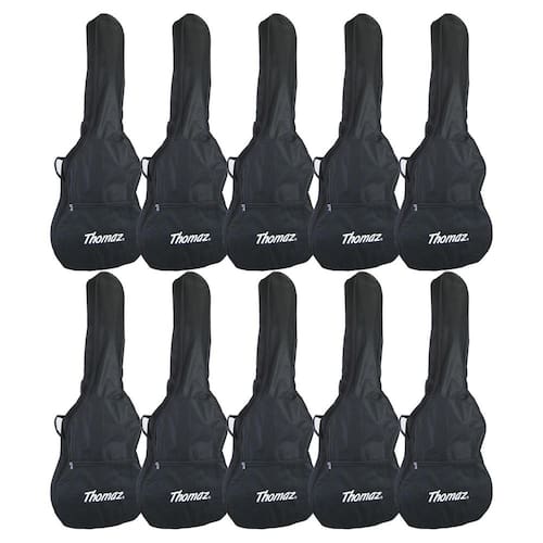 A capa para violão Thomaz foi cuidadosamente projetada para transportar e proteger seu violão, oferecendo o ajuste perfeito para instrumentos de 39”. Equipada com alça lateral e traseira, proporciona praticidade no transporte, além de um bolso frontal com zíper para armazenamento adicional. Ideal para músicos que valorizam tanto a segurança quanto a conveniência ao transportar seu instrumento.Especificações - Marca: Thomaz- Tamanho: 39”- Cor: Preta- Fechamento: Zíper- Medidas Aprox.: 13 x 42 x 100 cmConteúdo da Embalagem- 10 Capas para Violão Preta Thomaz*imagens meramente ilustrativas