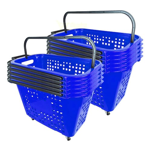 > O KIT CONTÉM- 10x Cestas de Compras com Rodas 40L Azul