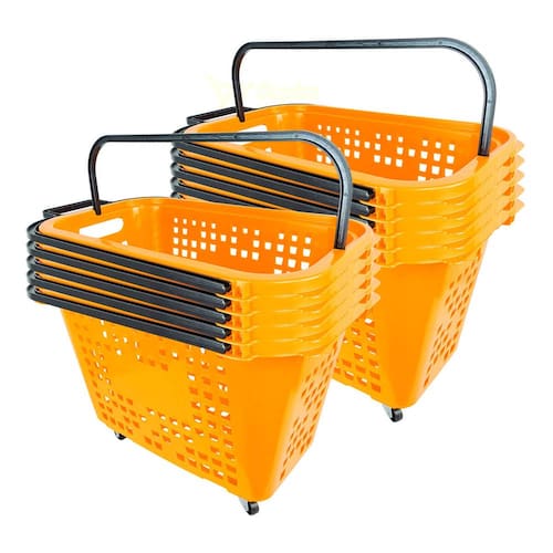 Kit 10 Cestas De Compras Com Rodas 40L Laranja