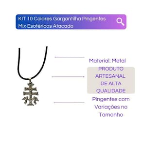 Enviamos seu produto em até 24 horas após a confirmação de pagamento Dimensões aproximadas:Pingentes de vários tamanhos Caso tenha alguma dúvida nos mande mensagem que respondemos rapidinho para te ajudar da melhor forma possível Marca: Meta Atacado