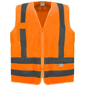 Colete de Sinalização de alta visibilidade, confeccionado em tecido 100% poliéster fluorescente com faixas reflexivas impermeáveis na parte frontal e costa, fechamento frontal em zíper. Performance de visibilidade superior para o indivíduo com o aumento da cobertura do tronco.
