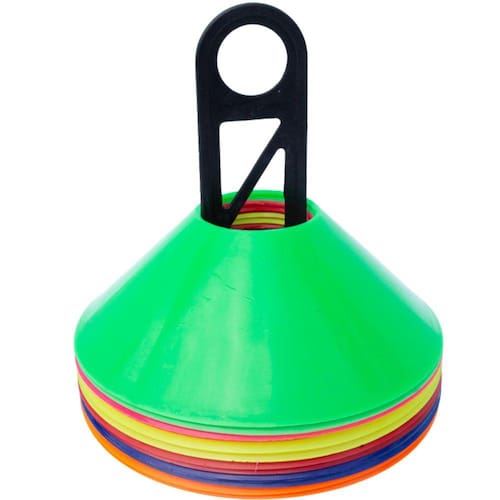Kit 10 Cones Chinesinho com Suporte para Ginastica funcional Cones Chinesinhos Coloridos, modelo Profissional para treinos de quadra, campo e academia, ginástica Funcional, Futsal, Futebol, Society etc... Kit com 10 unidades, acompanha suporte para carregar.