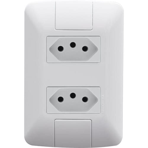 Com o Conjunto 4x2 com 2 Tomadas 2P+T Tramontina Aria 20 A 250 V Branco você terá mais praticidade na hora de ligar mais de um equipamento elétrico ou eletrônico ao mesmo tempo. Produzido em termoplástico com acabamento brilho na cor branca, ele possui sistema modular com o suporte incorporado e furo oblongo que facilita a fixação e a regulagem da placa à parede, deixando-a reta; além disso, sua instalação não fica aparente, o que deixa seu cômodo ainda mais bonito. Um item ideal para sua casa, que acompanha suporte e parafusos para a instalação