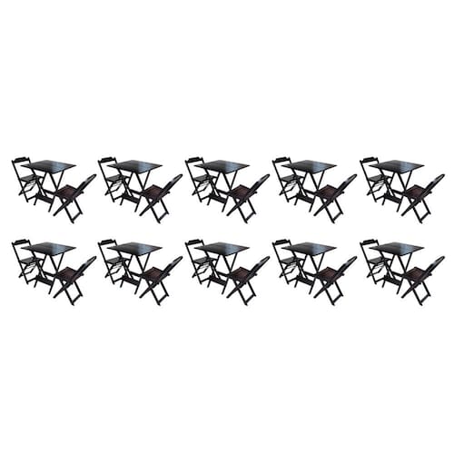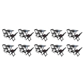 Kit 10 Conjuntos De Mesa Dobravel Com 2 Cadeiras De Madeira 70x70 Ideal Para Bar E Restaurante - Tabaco é ideal para bares, restaurantes, estabelecimentos, áreas de lazer e também para sua casa. Seu design permite que seja encaixado em qualquer ambiente, trazendo um toque a mais para seu estabelecimento. Além de sua durabilidade, o que lhe trará conforto para servir seus clientes. Por ser dobrável torna-se mais fácil guardar, manusear e limpar o produto. Atenção: EVITE USAR PRODUTOS ABRASIVOS E QUíMICOS PARA LIMPEZA DO PRODUTO, aconselha-se o uso de pano umedecido para melhor conservação; mantenha o produto fora de chuva e sol constantes. Dimensões: Medidas da Mesa: Altura: 76cm Largura: 70cm Comprimento: 70cm