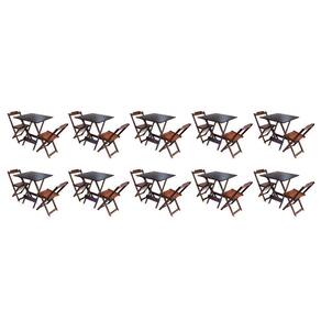 Kit 10 Conjuntos De Mesa Dobravel Com 2 Cadeiras De Madeira 70X70 - Imbuia - Marrom