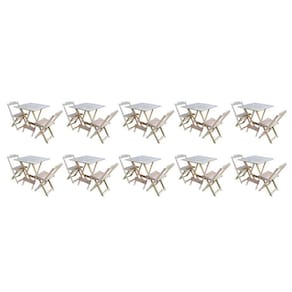 Kit 10 Conjuntos De Mesa Dobravel Com 2 Cadeiras De Madeira 70x70 - Sem Pintura - Cor: Marrom