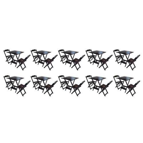 Kit 10 Conjuntos De Mesa Dobravel Com 2 Cadeiras De Madeira 70x70 - Tabaco - Cor: Marrom