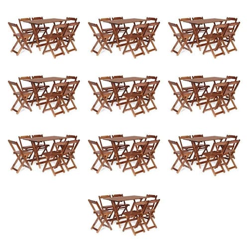 Kit 10 Conjuntos Dobráveis 120 X 70 Com 6 Cadeiras Imbuia - M.b Móveis