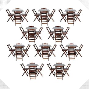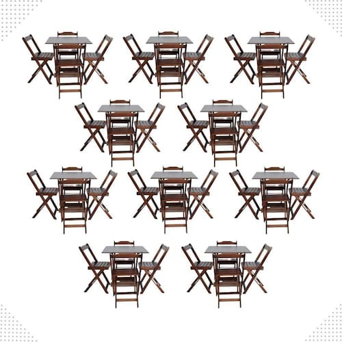 Kit 10 Conjuntos Mesas Dobráveis 70x70 com 4 Cadeiras -