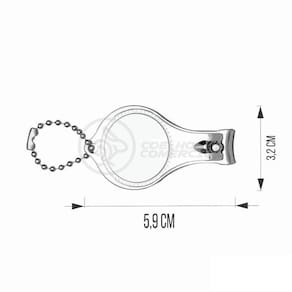 Cortador de unhas chaveiro de metal 3 em 1: abridor, cortador e lixa. Parte central circular ideal para gravações, detalhe de traços no contorno circular. Lado frontal com detalhes em relevo nas laterais e pequeno círculo acima do abridor. Para utilizar o cortador basta rotacionar a peça circular e levantá-la. Acompanha correntinha.