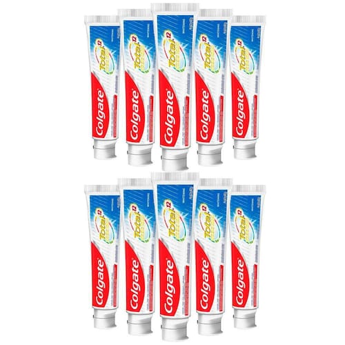 O Kit contém: 10 Creme Dental Colgate Total 12 Whitening com 180g cada.