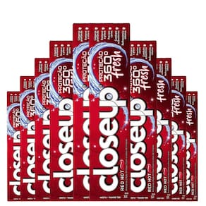 A fórmula exclusiva do creme dental em gel de Closeup Proteção 360 Fresh Menthol Paradise, entrega proteção e cuidado completos, proporcionando hálito incrivelmente refrescante e dentes mais brancos a cada uso. Sua fórmula com flúor e ingredientes de enxaguante bucal com zinco ativo, possuem ação antibac, protegendo contra cáries, placa e ajudando a eliminar até 99% das bactérias causadoras do mau hálito, proporcionando até 12 hora de hálito fresco e duradouro. Limpa profundamente seus dentes para um sorriso branco e radiante a cada uso, graças aos cristais micro-shine presentes em sua fórmula. O sabor Red Hot apresenta notas picantes de cravo combinadas com notas específicas (mentol-wintergreen), proporcionando uma sensação duradoura gelada de frescor.