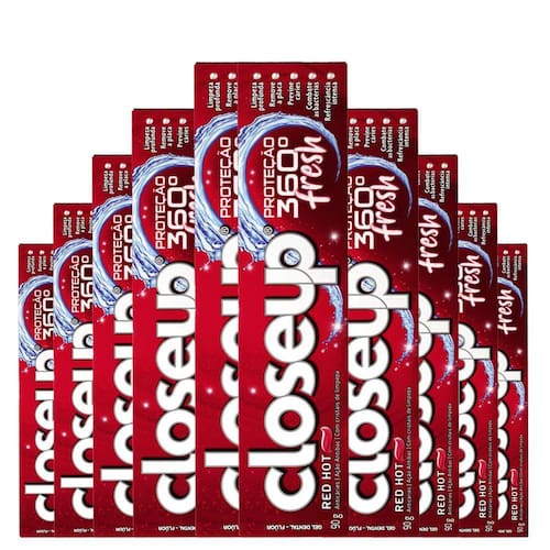 O Kit contém: 10 Creme Dental em Gel Closeup Proteção 360 Fresh Red Hot com 90g cada.