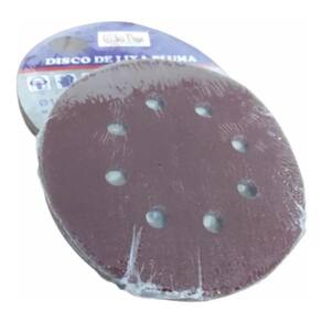 Disco de lixa pluma de alta qualidade e poder de desbaste, amplamente indicado para lixar peças de metal, madeira e similares.Perfeito para desbaste de peças com superfície regular e irregular, garantindo um acabamento uniforme devido a sua flexibilidade e poder de remoção.Disco indicado para uso com máquina do tipo orbital.Características:- modelo: disco com tiras aderentes- furos: 8- anti empastamento- aplicação da marrom: madeira, metal e similares.- medida: 125mm 5u0022- rpm: 12.200- composição: resina, oxido de alumínio, papel e pluma.- quantidade: 10 unidades de discos de lixa