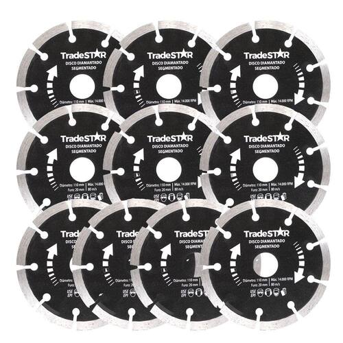 Disco Diamantado Segmentado 110x20 mm - Ideal para cortes precisos em materiais como concreto, cerâmica, pedras naturais e artificiais. Seus segmentos proporcionam um corte rápido e eficiente, sem danificar o material. Compatível com diversas máquinas de corte, possui uma fixação segura e fácil de ser instalado. Garanta agora um trabalho de qualidade com o Disco Diamantado Segmentado 110x20 mm.