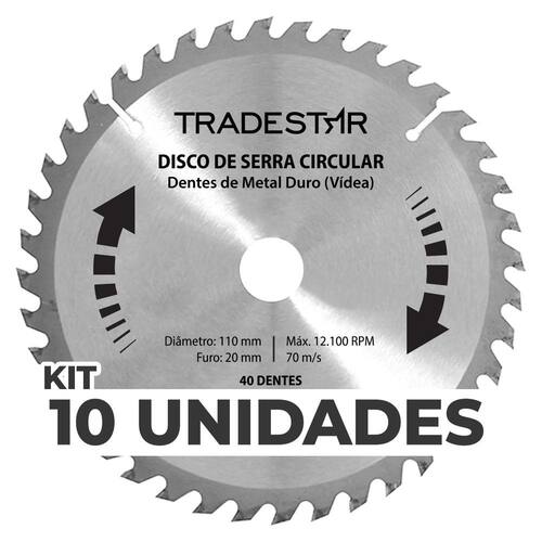 Kit com 10 Unidades Discos Serra Circular Madeira 40 D 110x20mm para uso Makita