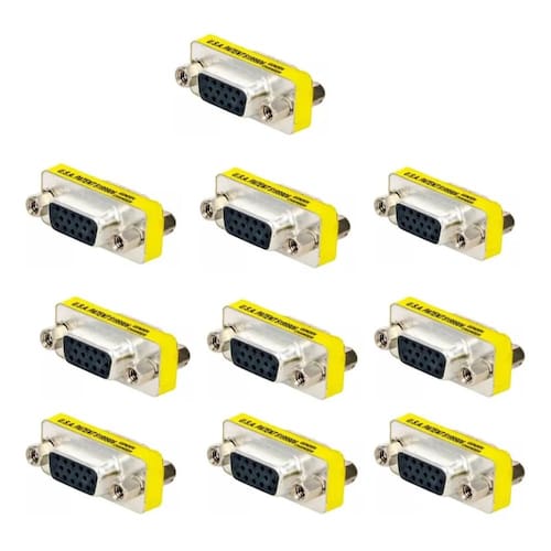 Tipo: Emenda VGA HD15 (D-Sub 15 pinos) Gênero: Fêmea para Fêmea Material: Corpo em plástico com conectores metálicos Cor: Preto com detalhes metálicos Dimensões (cada peça): 30mm x 17mm x 12mm (aproximadamente) Quantidade: 10 unidades Aplicação: Extensão de sinal entre dois cabos VGA macho Marca: Não Informado