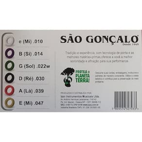 Kit 10 Encordoamento Violão Aço São Gonçalo 010 Descrição: O Encordoamento para Violão de Aço São Gonçalo com calibre .010 é uma opção confiável para músicos que buscam um conjunto de cordas duráveis e com sonoridade equilibrada. Projetado para oferecer uma resposta tonal consistente e uma experiência de tocabilidade confortável, este encordoamento atende às necessidades de violonistas de diferentes estilos musicais. Principais Características: Calibre .010: As cordas com calibre .010 proporcionam uma sensação equilibrada de tocabilidade, sendo adequadas tanto para iniciantes quanto para músicos mais experientes. Material de Alta Qualidade: Fabricadas com materiais de qualidade, as cordas São Gonçalo são conhecidas por sua durabilidade e resistência à corrosão, proporcionando uma vida útil prolongada ao encordoamento. Sonoridade Equilibrada: Este conjunto de cordas oferece uma sonoridade equilibrada, com agudos claros, médios expressivos e graves encorpados. Essa característica tonal torna-o versátil para diversos estilos musicais. Resposta Tonal Consistente: As cordas proporcionam uma resposta tonal consistente, garantindo um desempenho musical confiável em diferentes ambientes e condições. Fácil de Tocar: Com uma sensação confortável sob os dedos, o encordoamento São Gonçalo com calibre .010 é fácil de tocar, tornando-o uma escolha acessível para músicos de todos os níveis. Compatibilidade com Violões de Aço: Projetado especificamente para violões de aço, este encordoamento ressalta as características tonais desse tipo de instrumento. Versatilidade Musical: Adequado para uma ampla variedade de estilos musicais, desde o fingerstyle até o strumming, este encordoamento oferece versatilidade aos músicos. Marca São Gonçalo: Reconhecida por sua tradição na fabricação de cordas musicais, a São Gonçalo é uma marca respeitada no mercado, garantindo qualidade e confiabilidade. O Encordoamento Violão de Aço São Gonçalo .010 é uma escolha sólida para músicos que valorizam um conjunto de cordas confiável, com sonoridade equilibrada e boa durabilidade. Seja para práticas diárias, gravações em estúdio ou apresentações , este encordoamento atende às expectativas dos violonistas exigentes. Sobre nossa loja: Com muito orgulho e paixão pela música, a E Musical tem o prazer de servir desde o ano de 2009. Durante esses anos, nos dedicamos incansavelmente a fornecer uma ampla gama de instrumentos musicais, equipamentos de áudio, acessórios e serviços de qualidade excepcional para músicos de todos os níveis e estilos. Lojaemusical Jacareí SP Marca: Não Informado