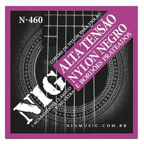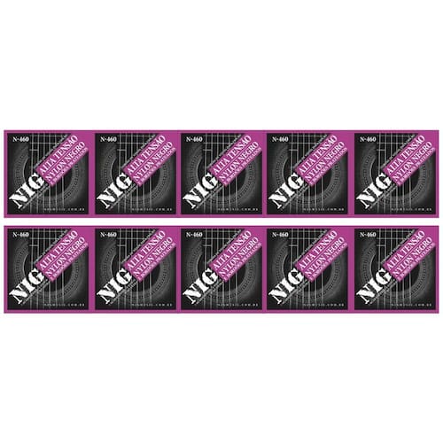Kit 10 Encordoamento Violão Nylon NIG Tensão Alta Preto Prateado N460