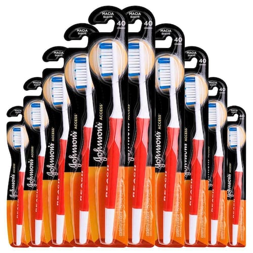Maior alcance para limpar as partes mais difíceis da boca. Johnson's Access foi desenvolvida para acessar as partes mais difíceis da boca. Seu cabo angulado proporciona maior alcance e o tufo frontal de suas cerdas é ideal para limpar os dentes do fundo. Além disso, possui cabo emborrachado para maior controle durante a escovação.